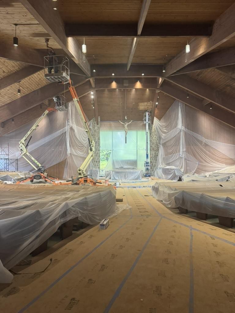 As I write this, a professional cleaning team has descended upon the church to bring it back up to operational standards…before they began it looked like a snowmageddon of sawdust, amidst a plastic dropcloth fantasyland.